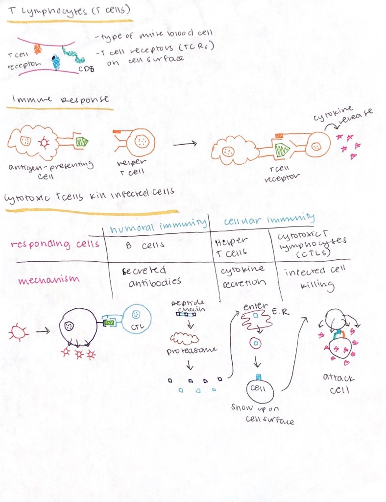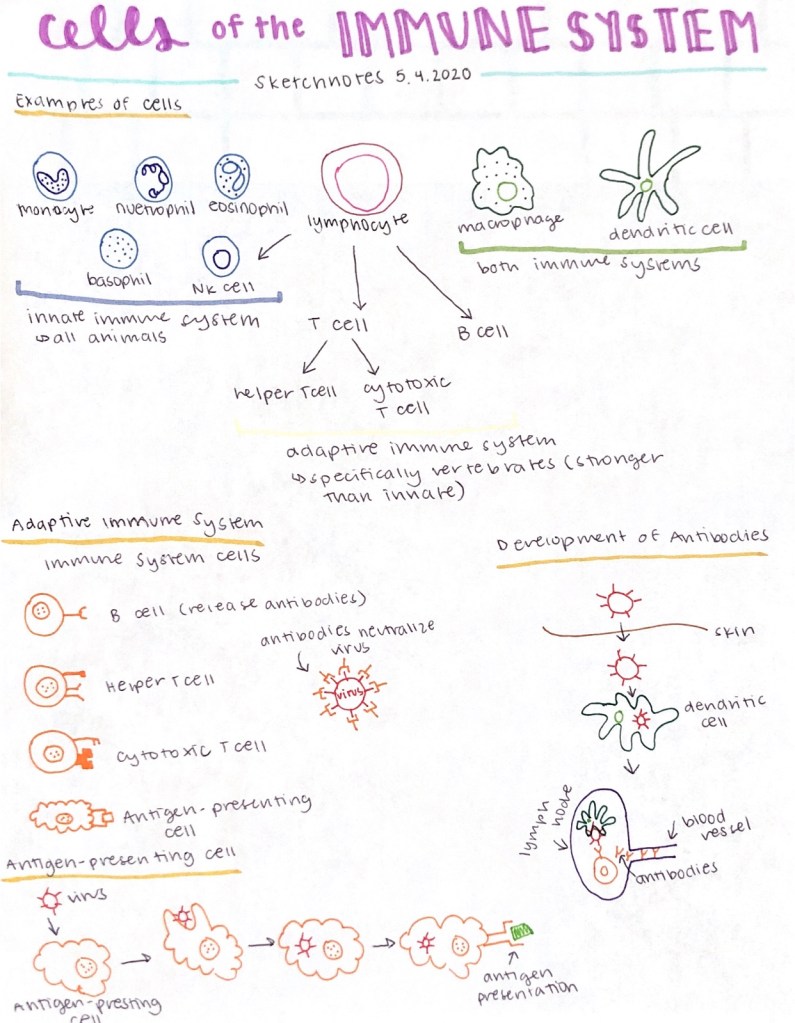 Today I learned a little bit about the Immune System and all of the different types of cells that are associated with it! Check out my sketchnotes to get a deeper understanding 🙂